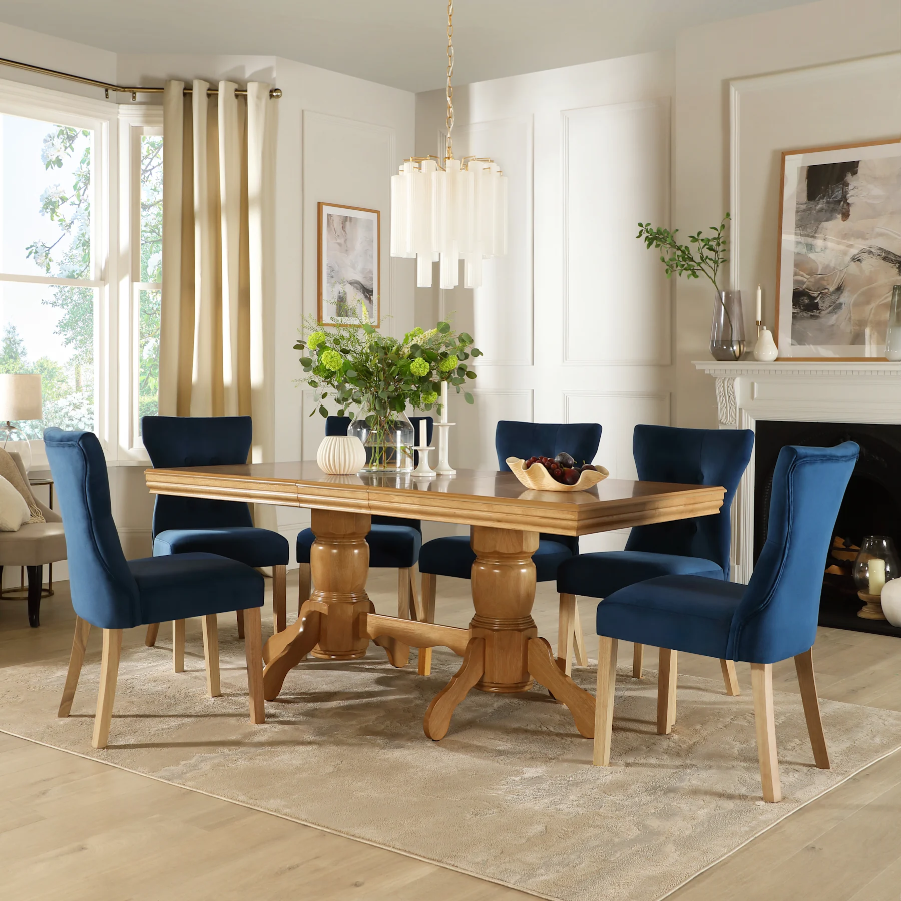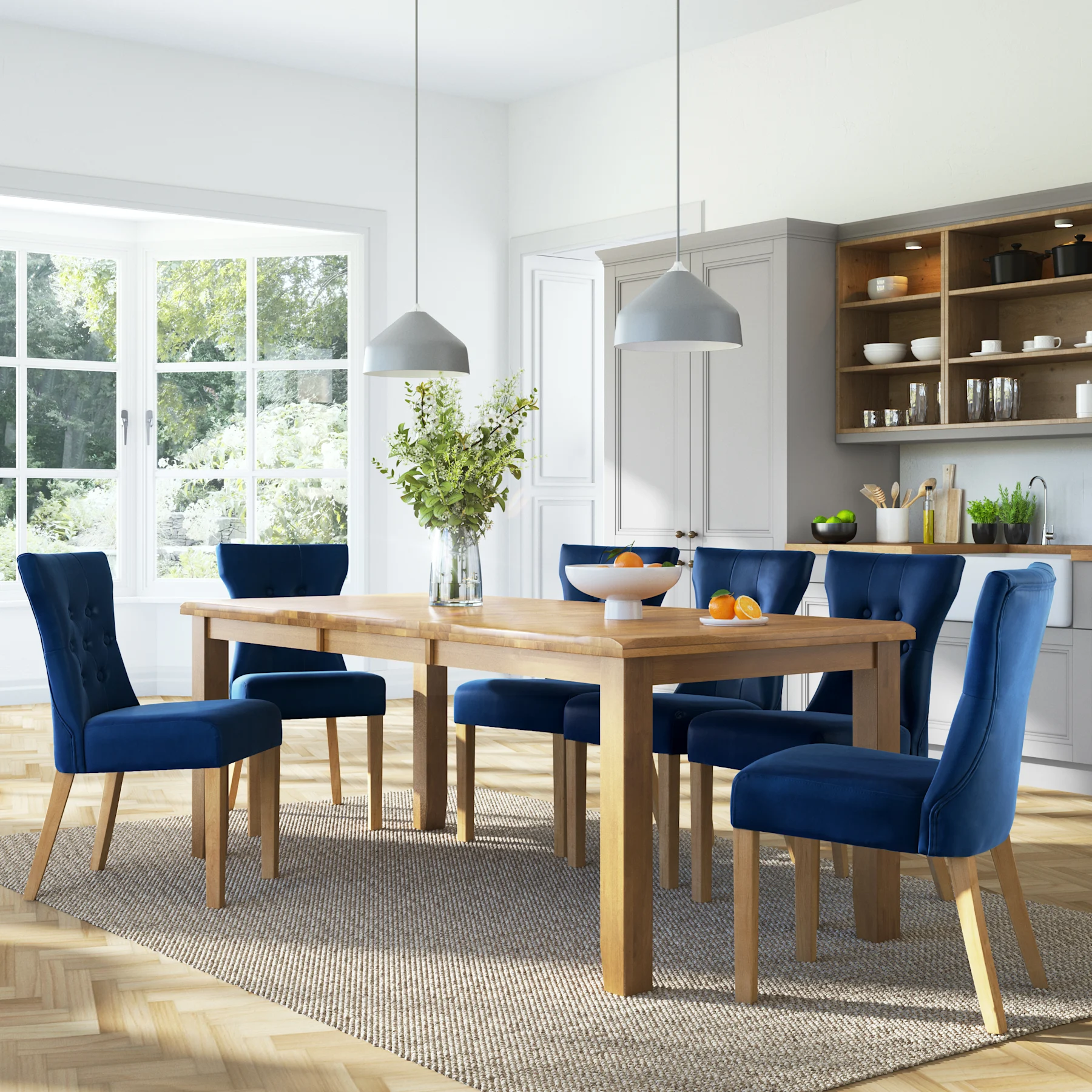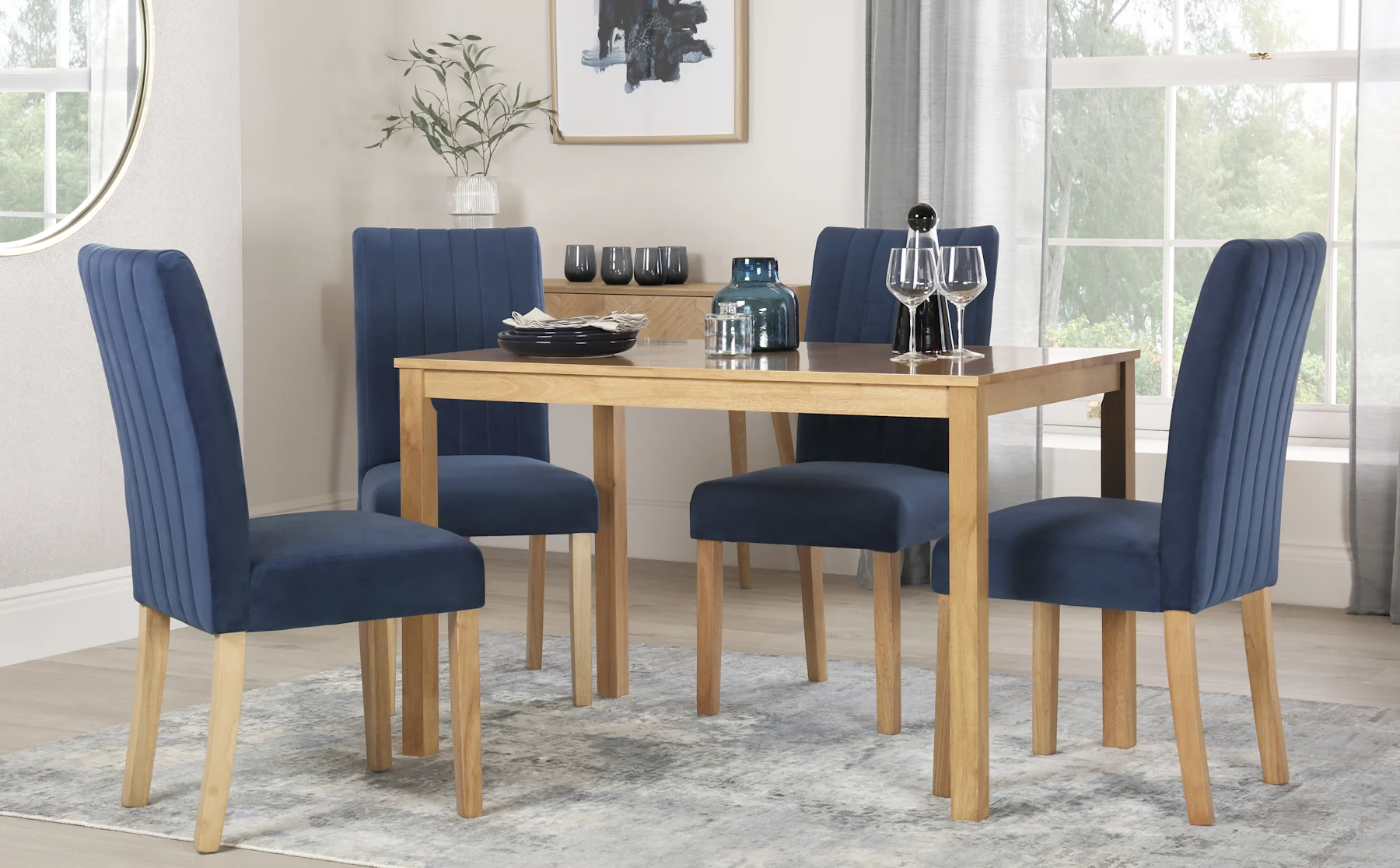 Transform your dining room with a blue dining table and chairs from our stunning collection. The vibrant blue hue makes this set a standout feature in any space while creating a calming and welcoming atmosphere. Built with a sturdy construction for lasting quality, each of our blue dining sets features comfortable seating that creates an inviting place for family meals or special occasions. Add a splash of colour to your home with a blue dining room table and matching chairs.