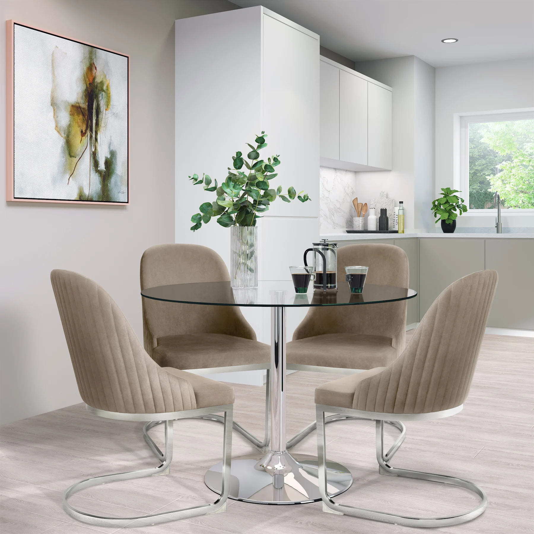 As glass tables are a versatile centrepiece, there's a lot of room to play with in terms of style - and depending on the look you're going for, it can also be easily dressed up or down. For a sophisticated, futuristic take, look out for details such as a gleaming chrome pedestal for a strong centrepiece in the dining room. And for a rustic, warm look with a modern twist, consider pairing a glass top table with natural oak chairs or soft fabric chairs in neutral shades.