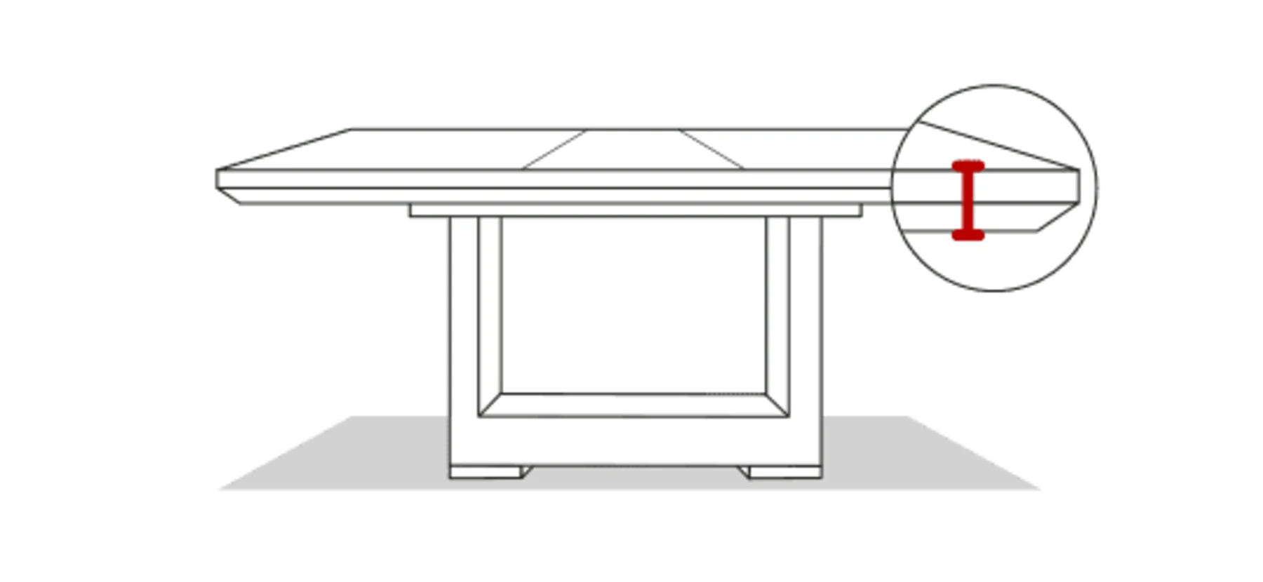 - Central extension leaf stored neatly underneath the table top