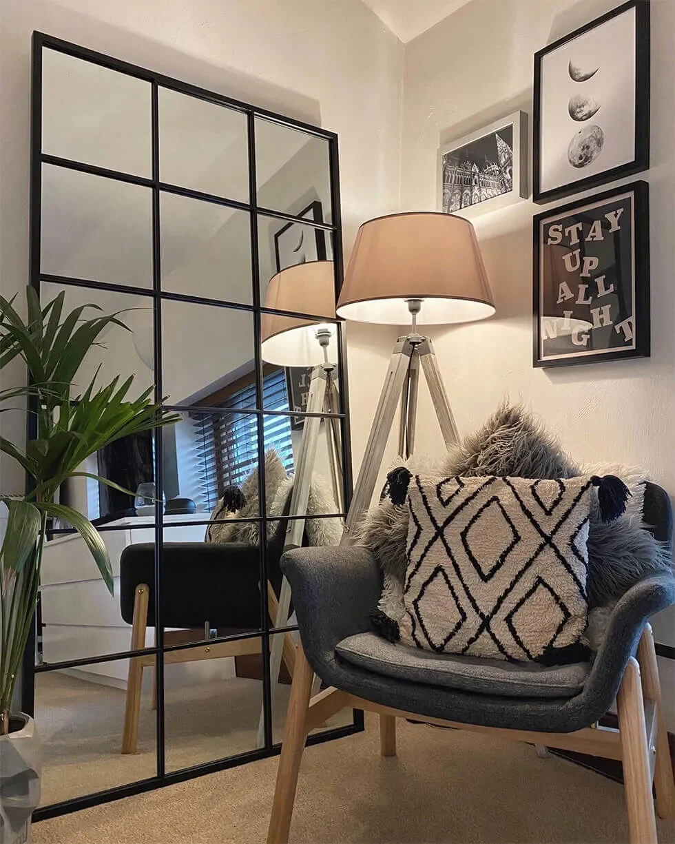 Incorporating subtle elements of black into the home is a great approach because it works incredibly well as an accent, offering a hint of drama and definition to your room.For instance, a black framed mirror provides grounding effect while making the room appear larger.Look out for smaller items such as lamps, vases and even candles, to layer into your space.