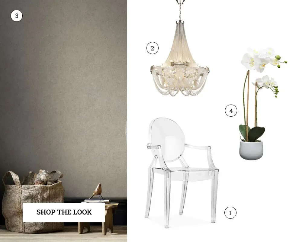 Victoria switched things up by pairing the Chatsworth with six timeless Kartell Louis Ghost chairs that she’s had for the past decade. Together with the abstract cobweb pattern wallpaper in the background from Harlequin, the room has a strong intimate feel. And, with a few gorgeous ceramic vases from Kelly Hoppen Home, it creates a sophisticated and layered look with its subtle paper-effect.