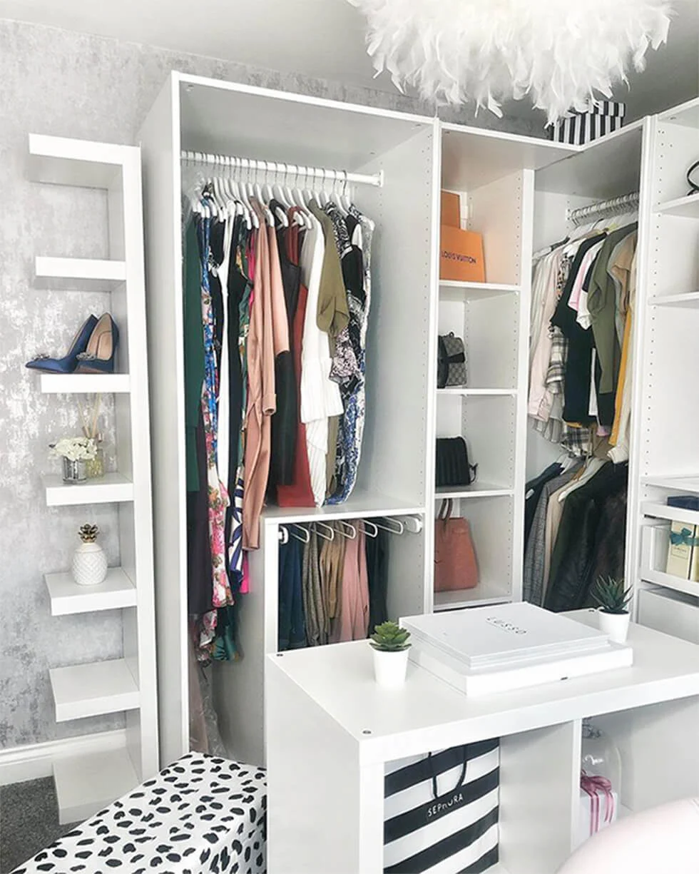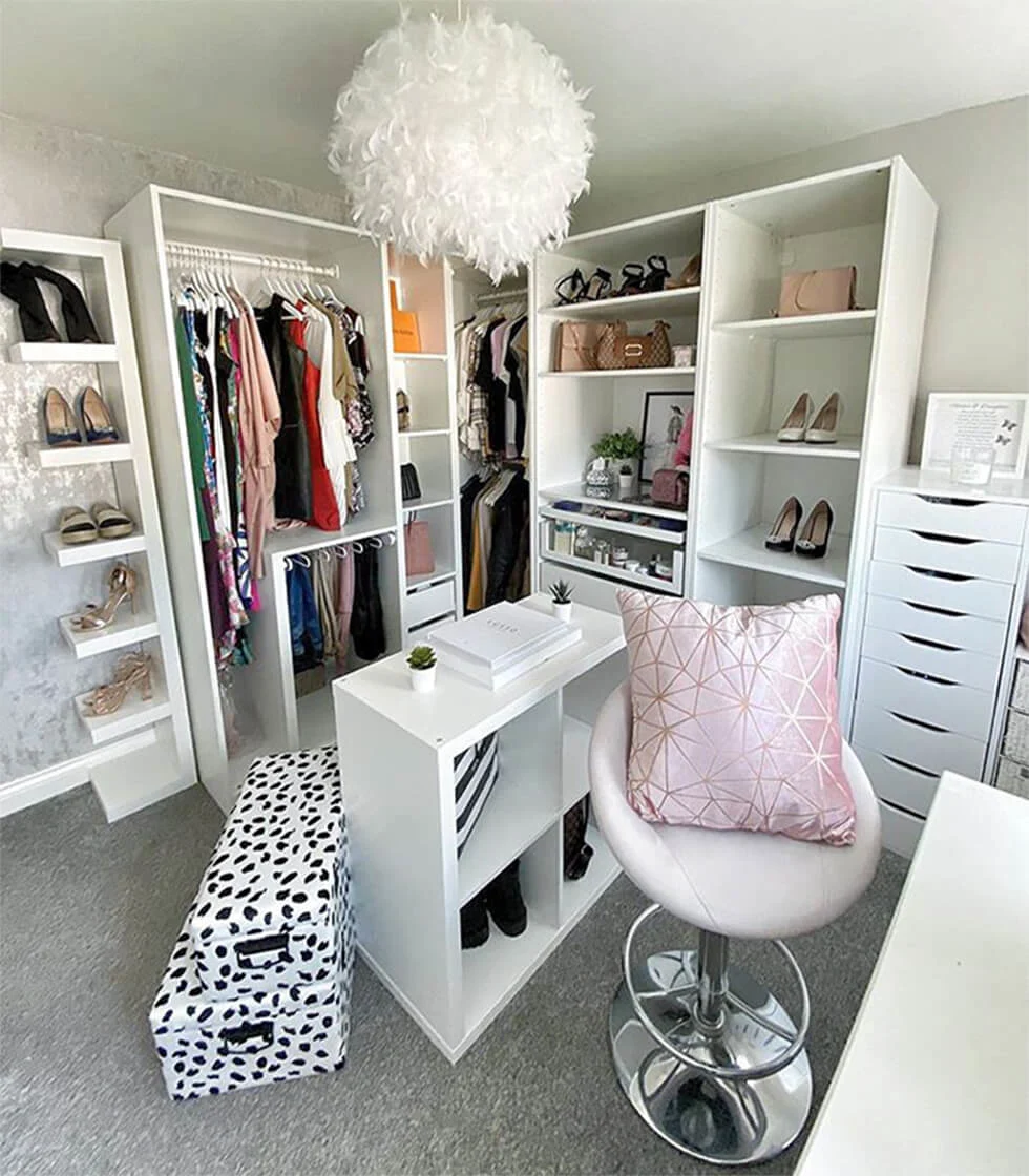 If having a room dedicated to your clothes and fashion accessories resonates with you, take a leaf out of Claire’s book! “When planning out a dressing room I think it’s important to think about the clothes that you already have and the type of storage you would need for them. For example, do you want specific drawers for underwear, or do you have long dresses that would require a floor length hanging space?”