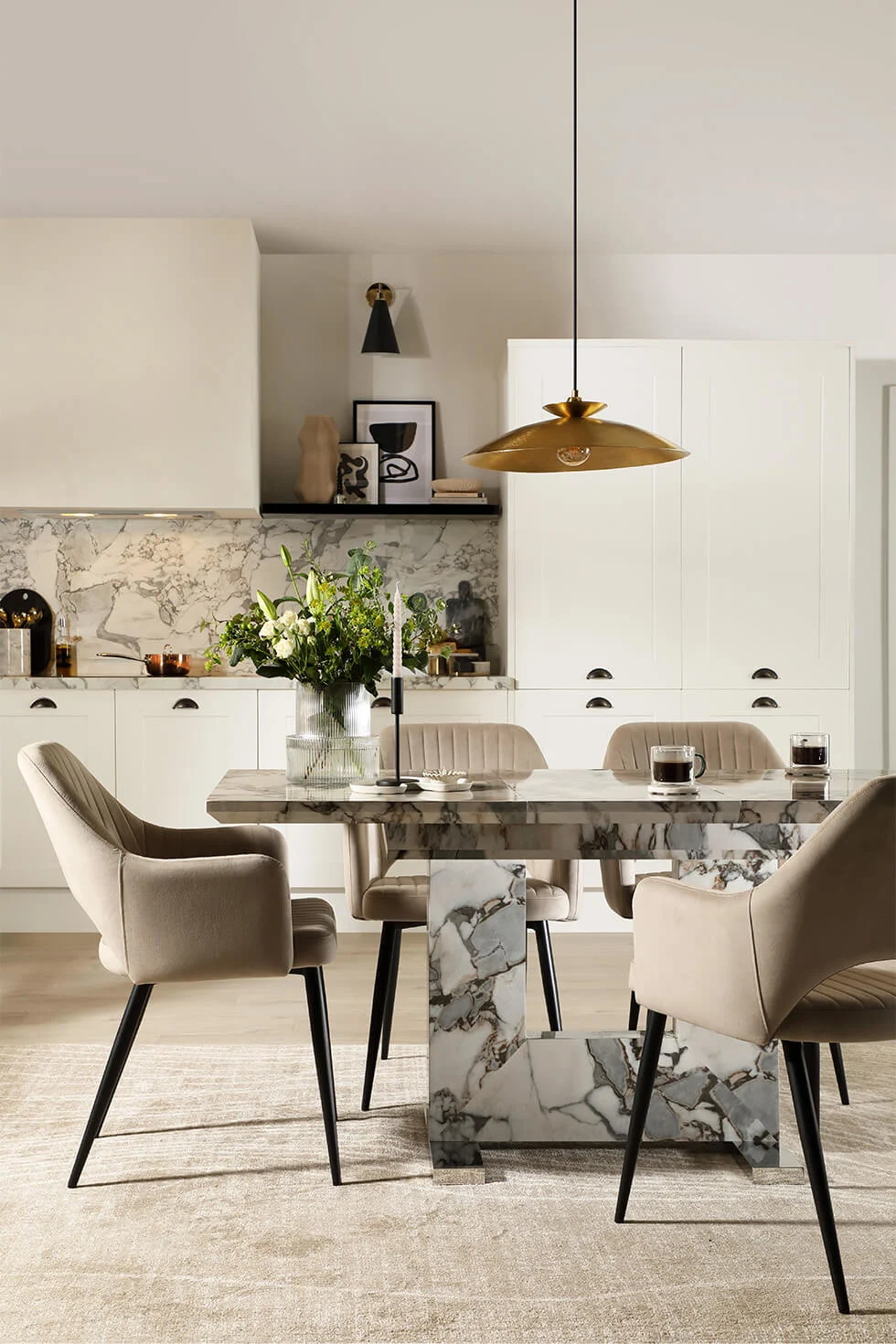 Renowned for their luxurious appeal and natural beauty, marble is set to redefine interior spaces in 2024. No longer confined to just classic colours, this timeless material is injecting new energy with vibrant hues and bold patterns. “Marble is finding its way into various elements of interior design beyond traditional flooring and countertops,” says Rebecca. “We see it now in a variety of colours being used in accent walls, statement furniture pieces, lighting fixtures, and even home accessories.”