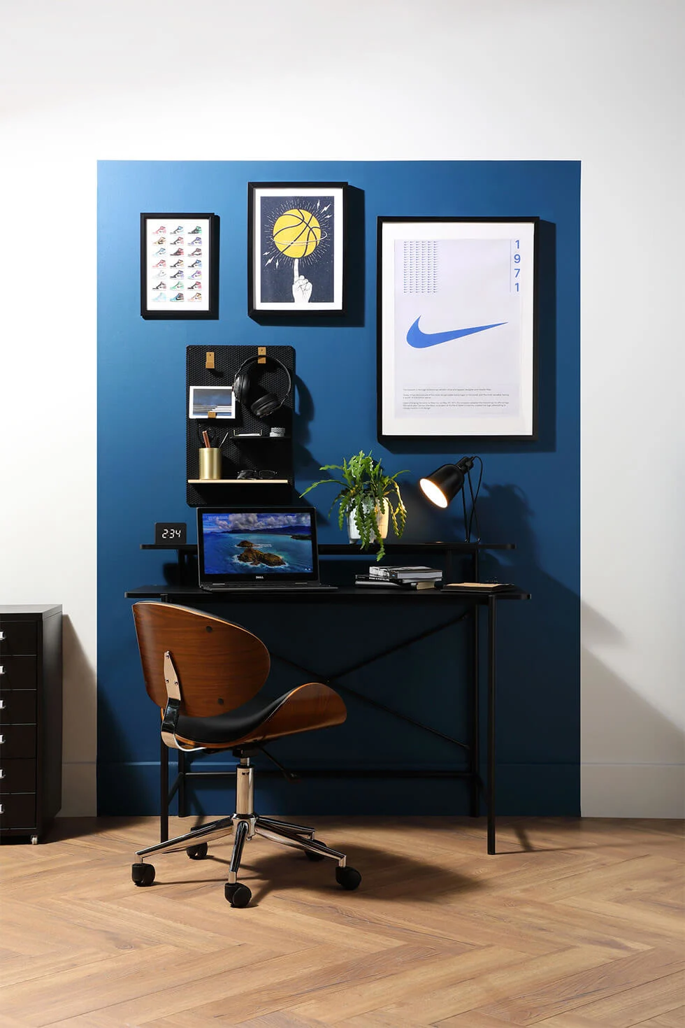 A customised section ups the practicality while encouraging you to work better and more efficiently. This nifty feature wall not only zones your work area but also allows you to personalise your space with posters or artwork.