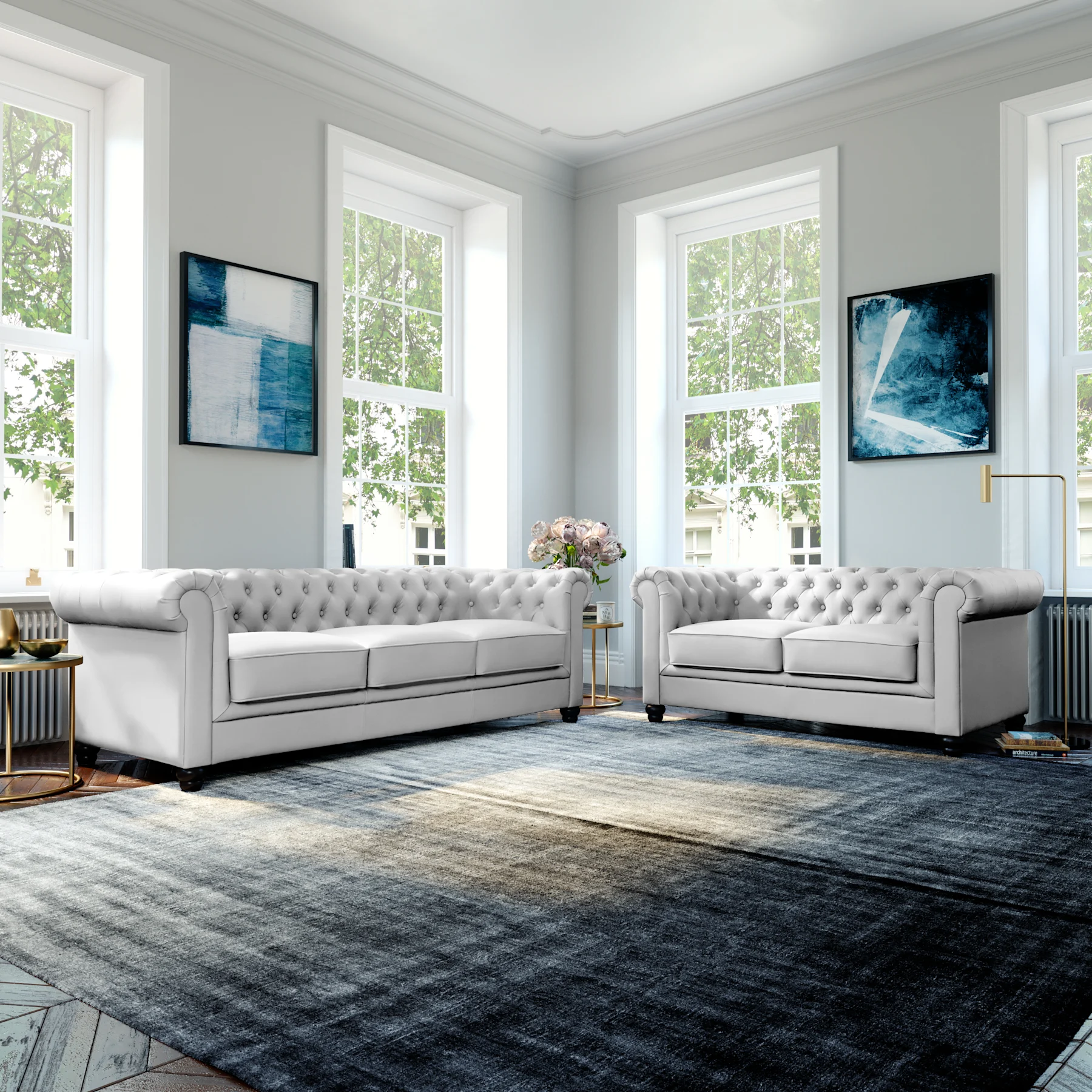 Featuring vintage details and a beautiful finish, our faux leather Chesterfields make for a stylish centrepiece. We have a wide variety of colours available to suit your style and taste. Enjoy the easy elegance of dark faux leather Chesterfield sofas, or go bold with white.