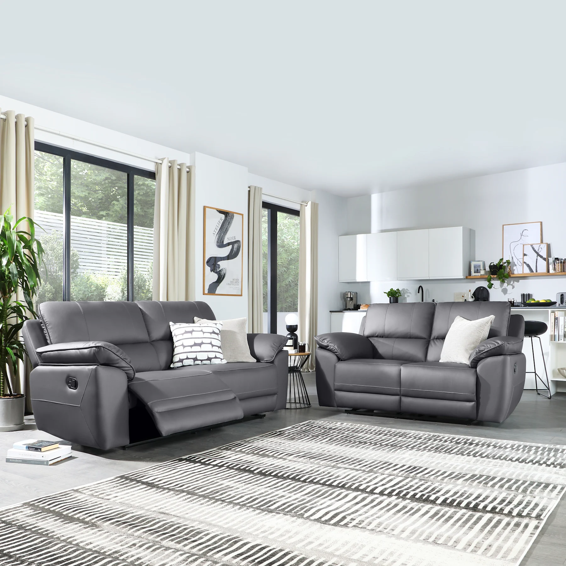 Carefully crafted for both luxury and comfort, our 2 seaters and 3 seater faux leather recliners are upholstered in soft, durable faux leather in classic black and brown shades, and even crisp white. Our minimal, tailored designs are built on clean lines, easily fitting into your living room, whatever your style or tastes may be. These sofas also feature cosy seats and many come with padded armrests for extra comfort.