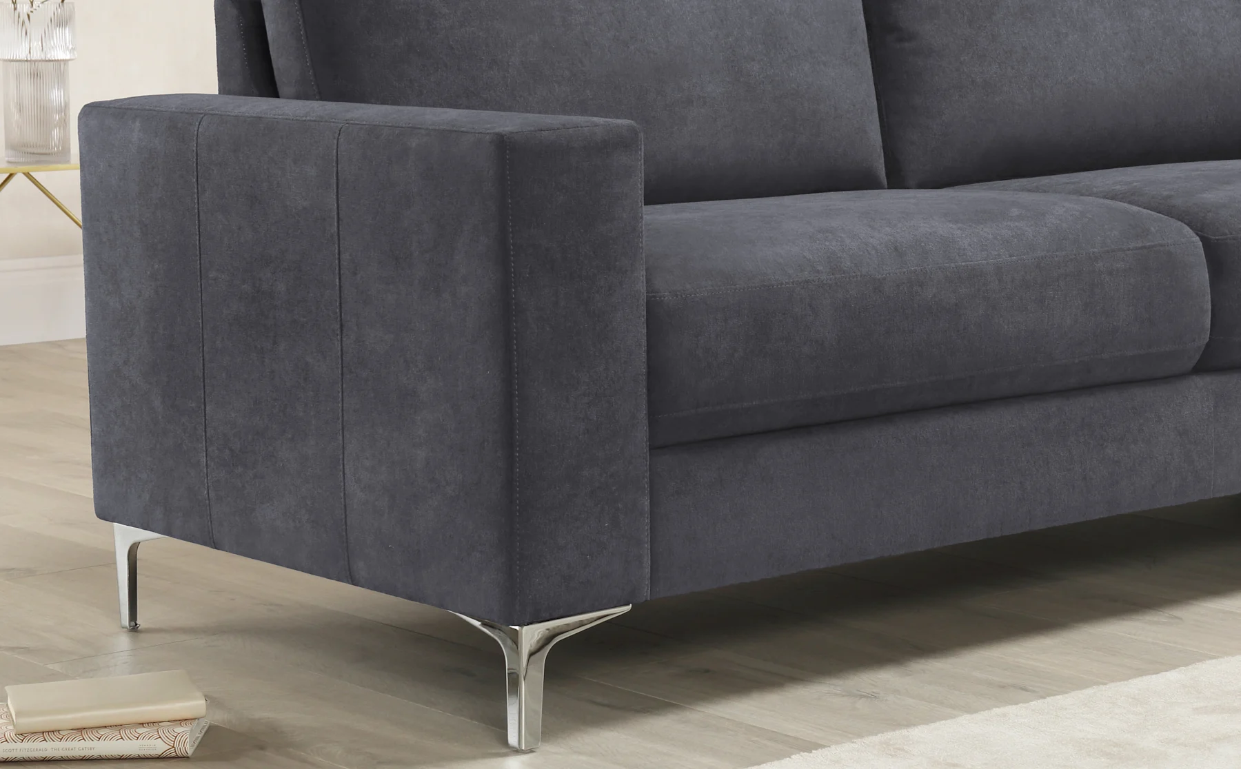 - Slim legs in a contemporary chrome finish