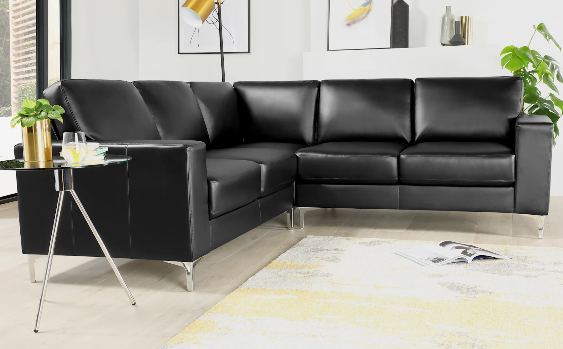 Baltimore Corner Sofa, Black Premium Faux Leather