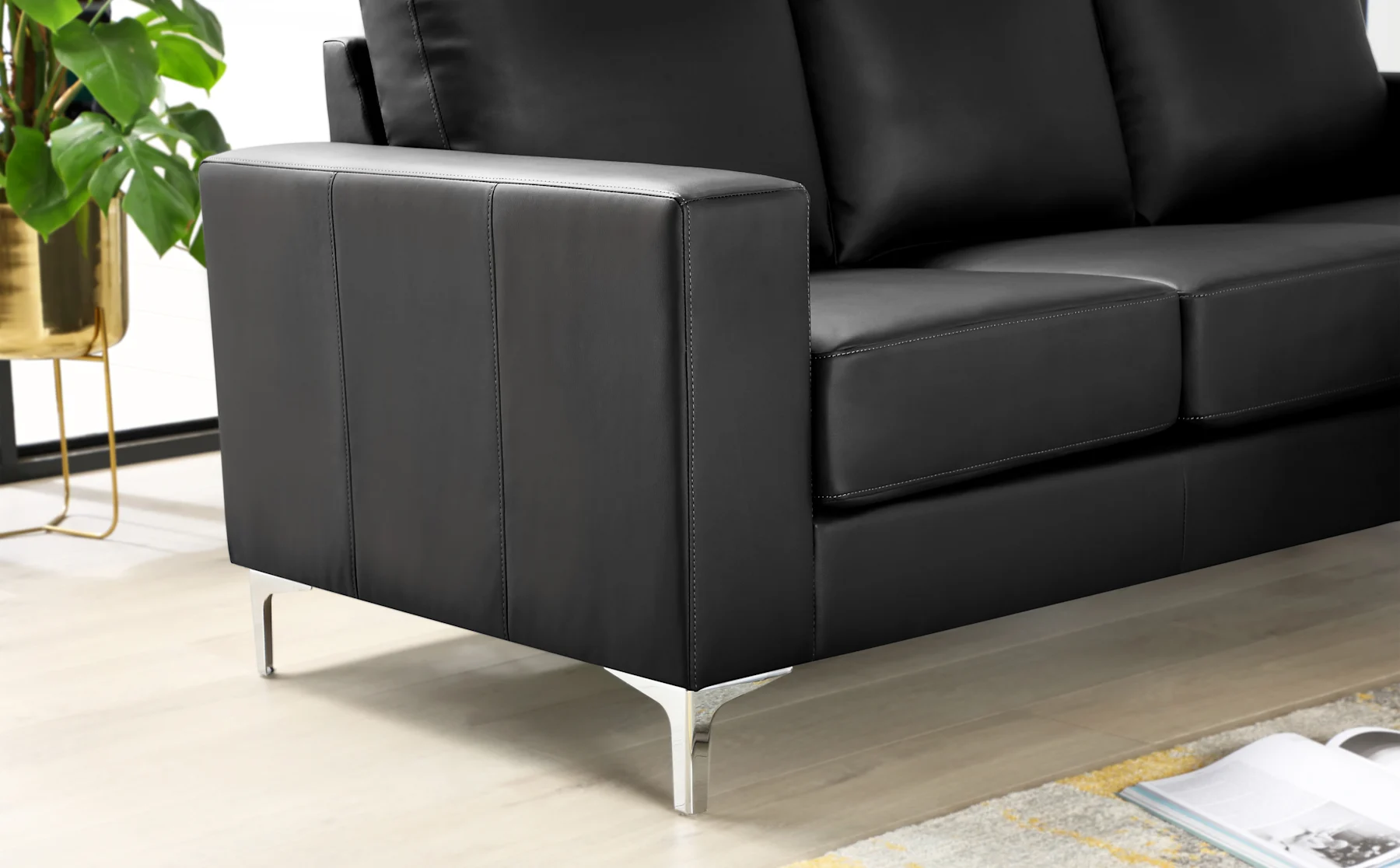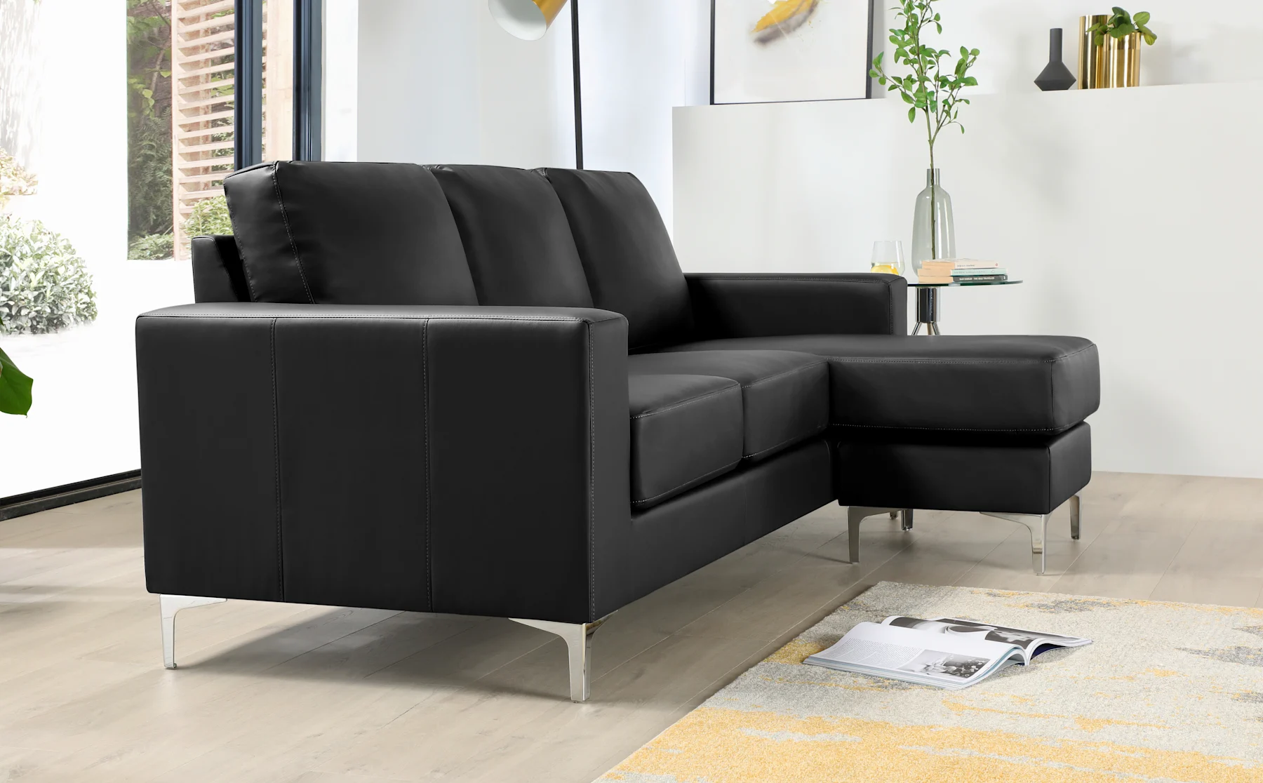 Baltimore L-Shape Corner Sofa, Black Premium Faux Leather