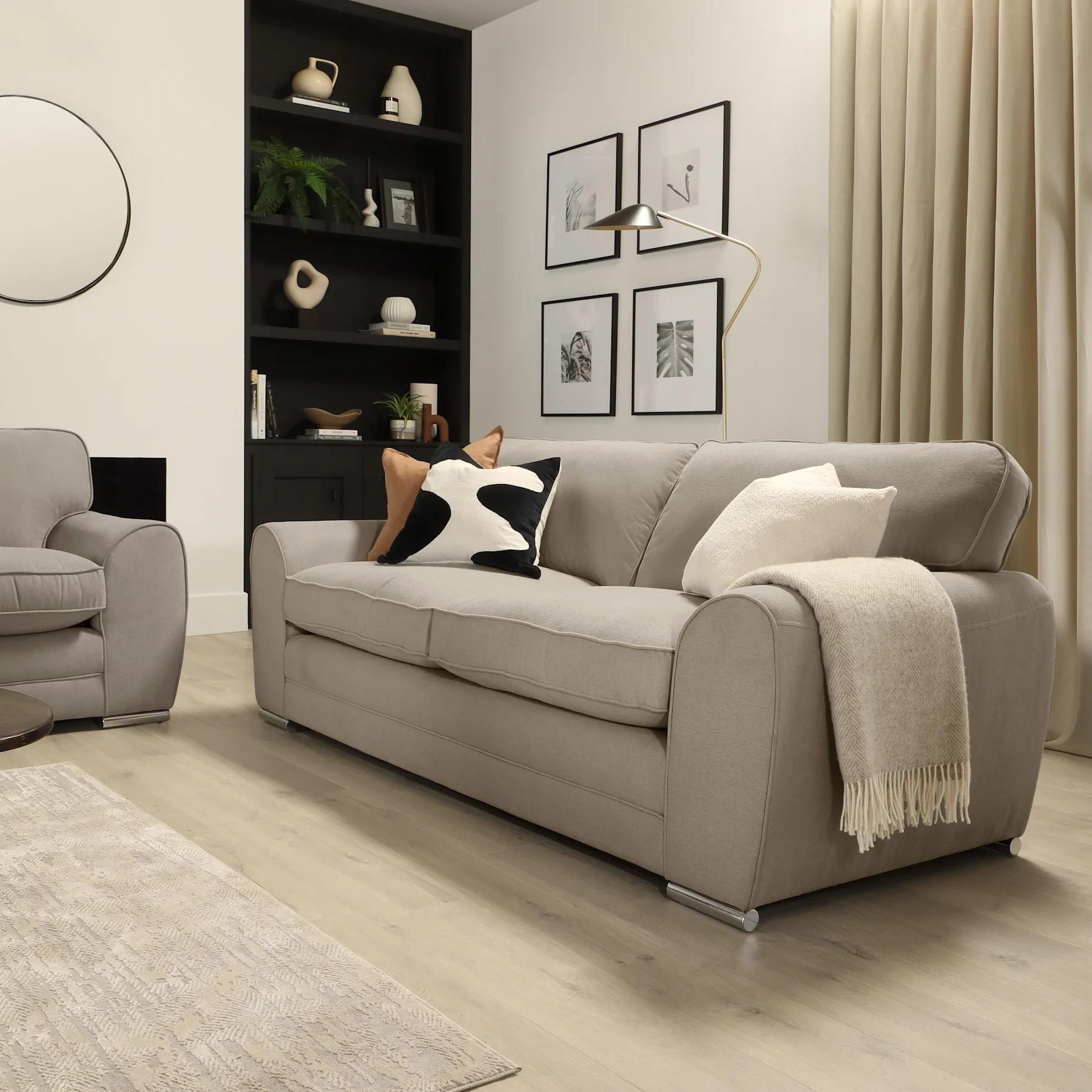 Burford 3 Seater Sofa, Beige House Plush Fabric