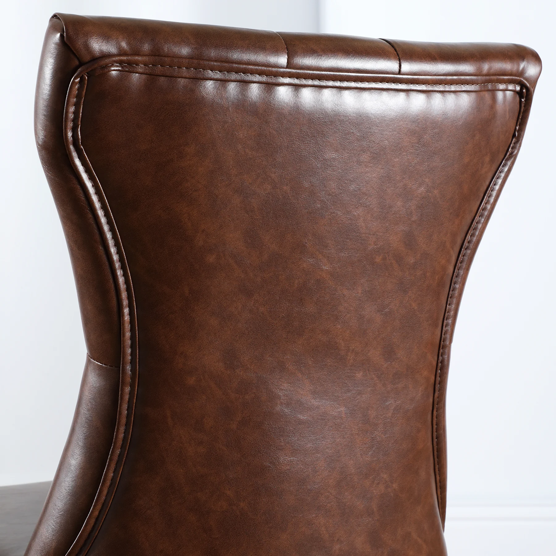 Bewley Dining Chair, Club Brown Premium Faux Leather & Dark Solid Hardwood