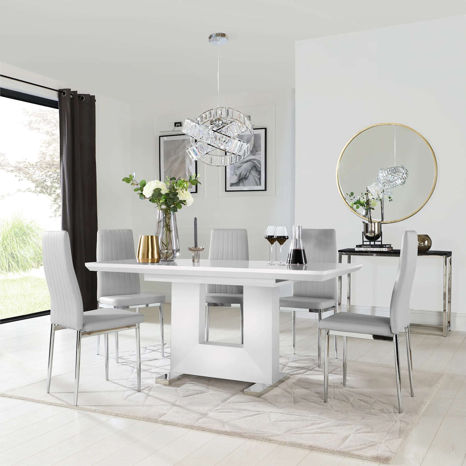 Pair it with stylish Leon chairs which feature slim chrome legs and a gently curved backrest for a tailored look.