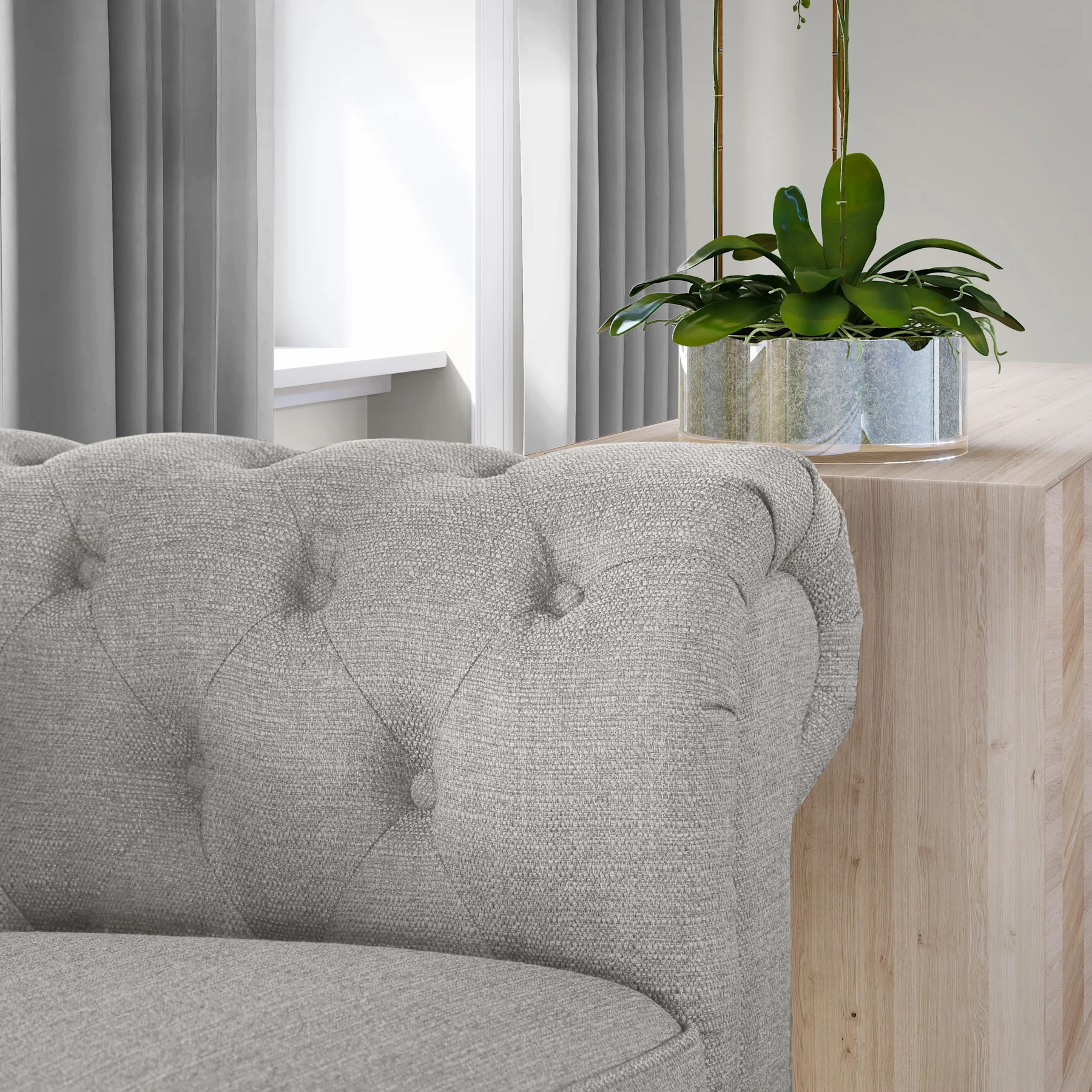 Hampton 2 Seater Chesterfield Sofa, Light Grey Classic Linen-Weave Fabric