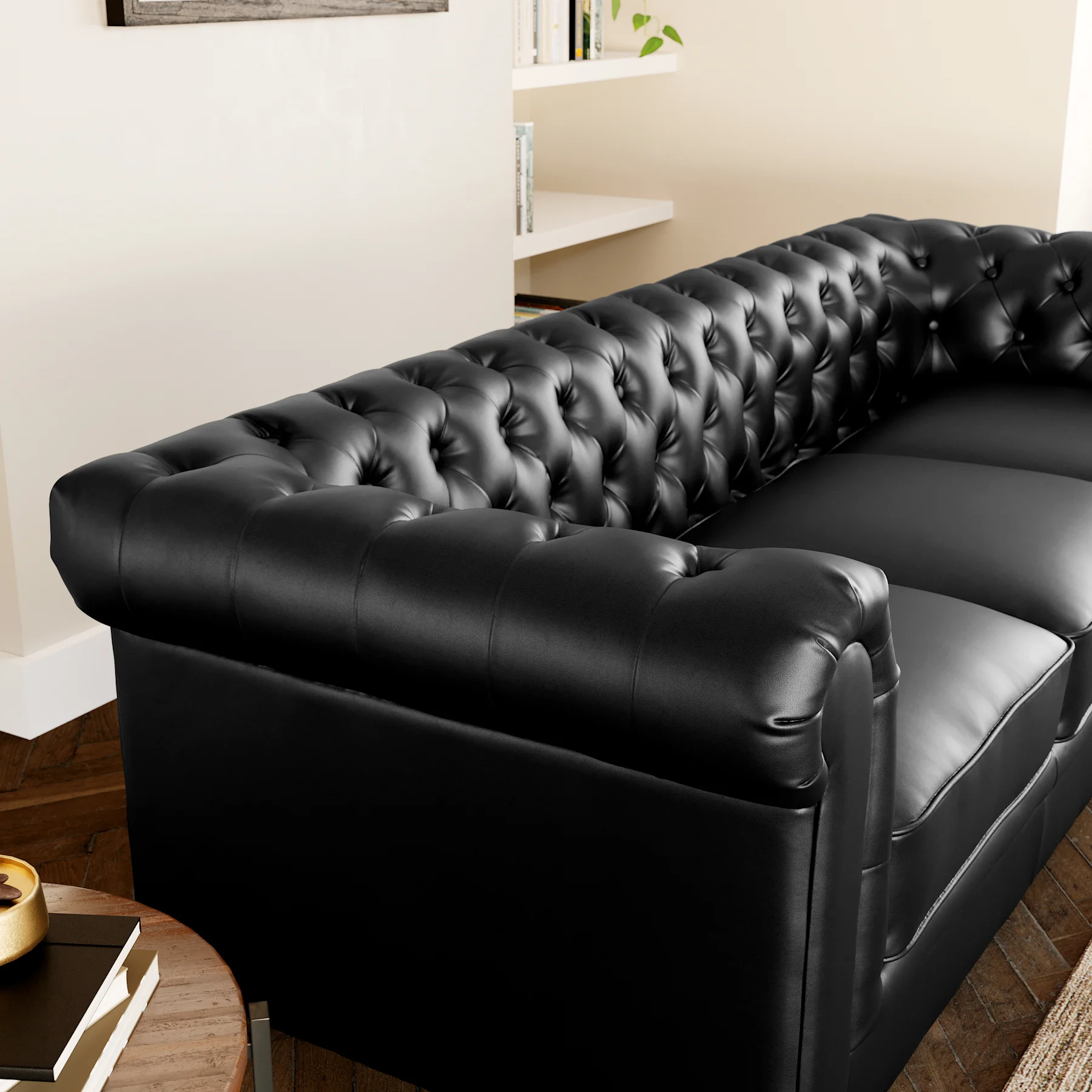 Hampton 3 Seater Chesterfield Sofa, Black Premium Faux Leather