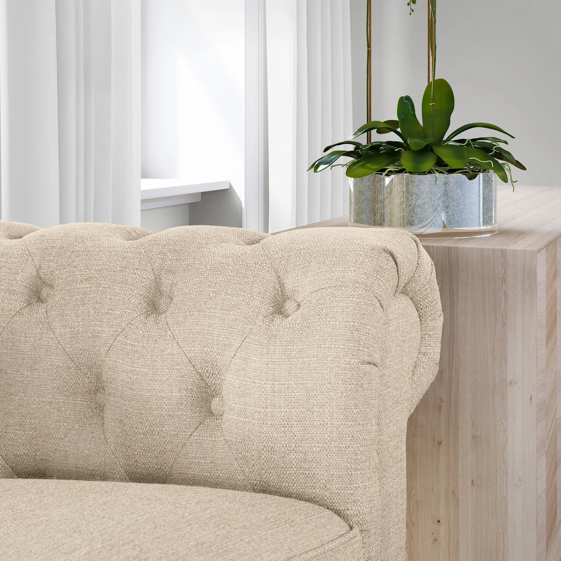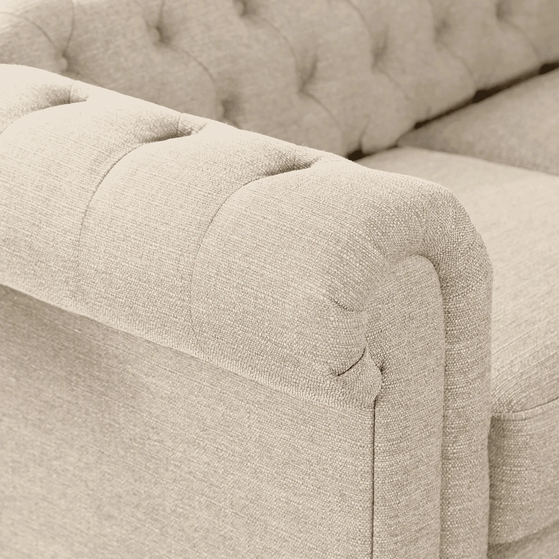 Hampton 3 Seater Chesterfield Sofa, Oatmeal Classic Linen-Weave Fabric