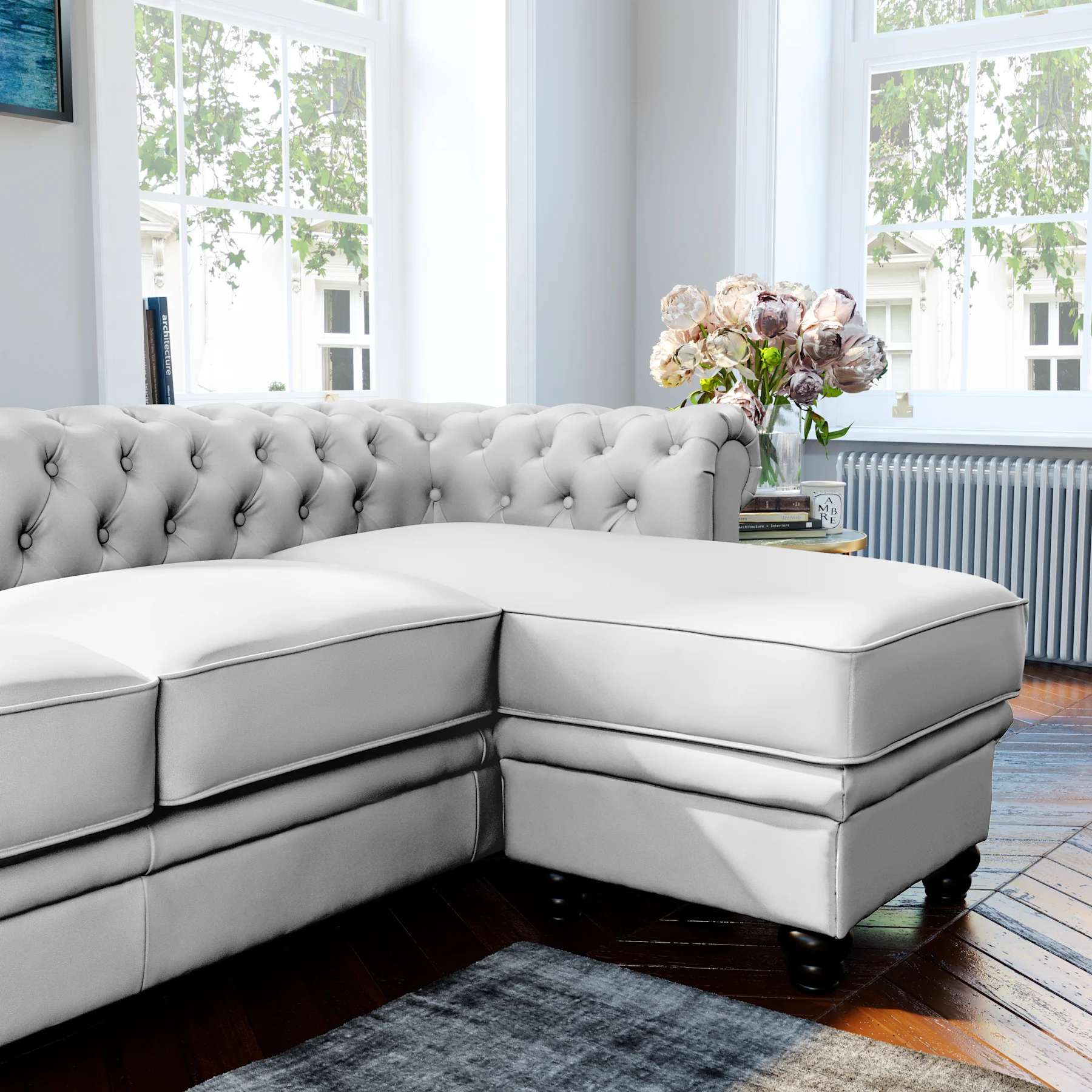 Hampton Chesterfield L-Shape Corner Sofa, Light Grey Premium Faux Leather