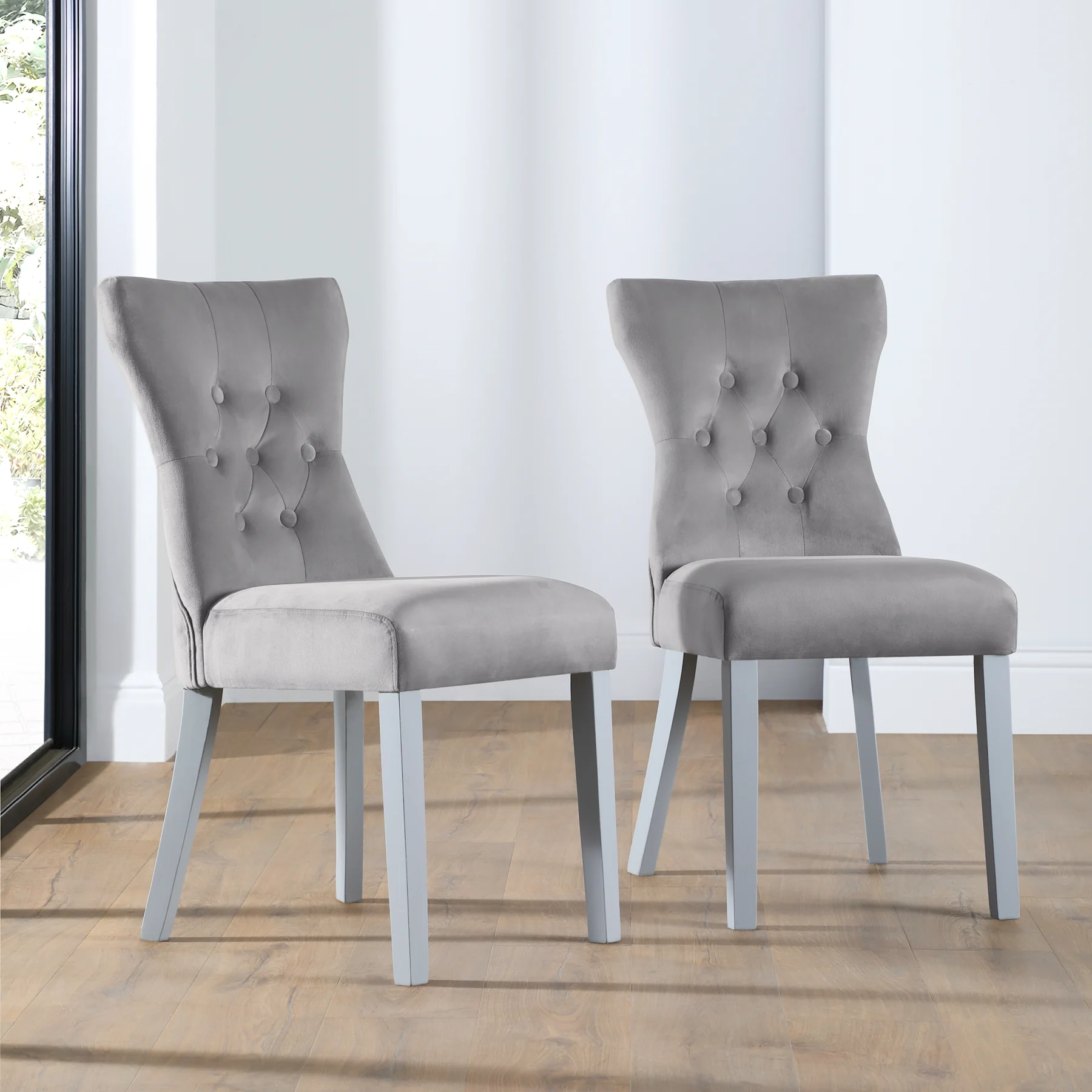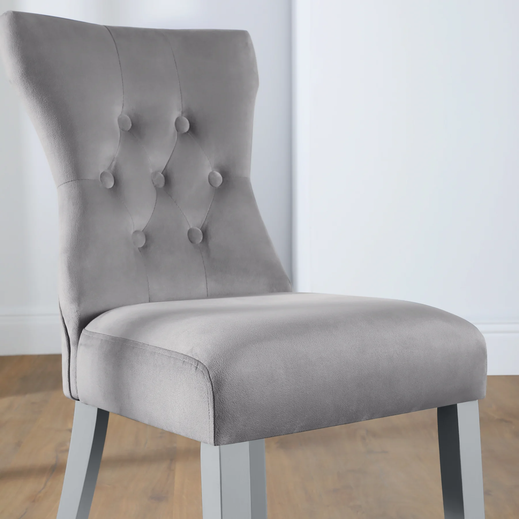 Bewley Dining Chair, Grey Classic Velvet & Grey Solid Hardwood