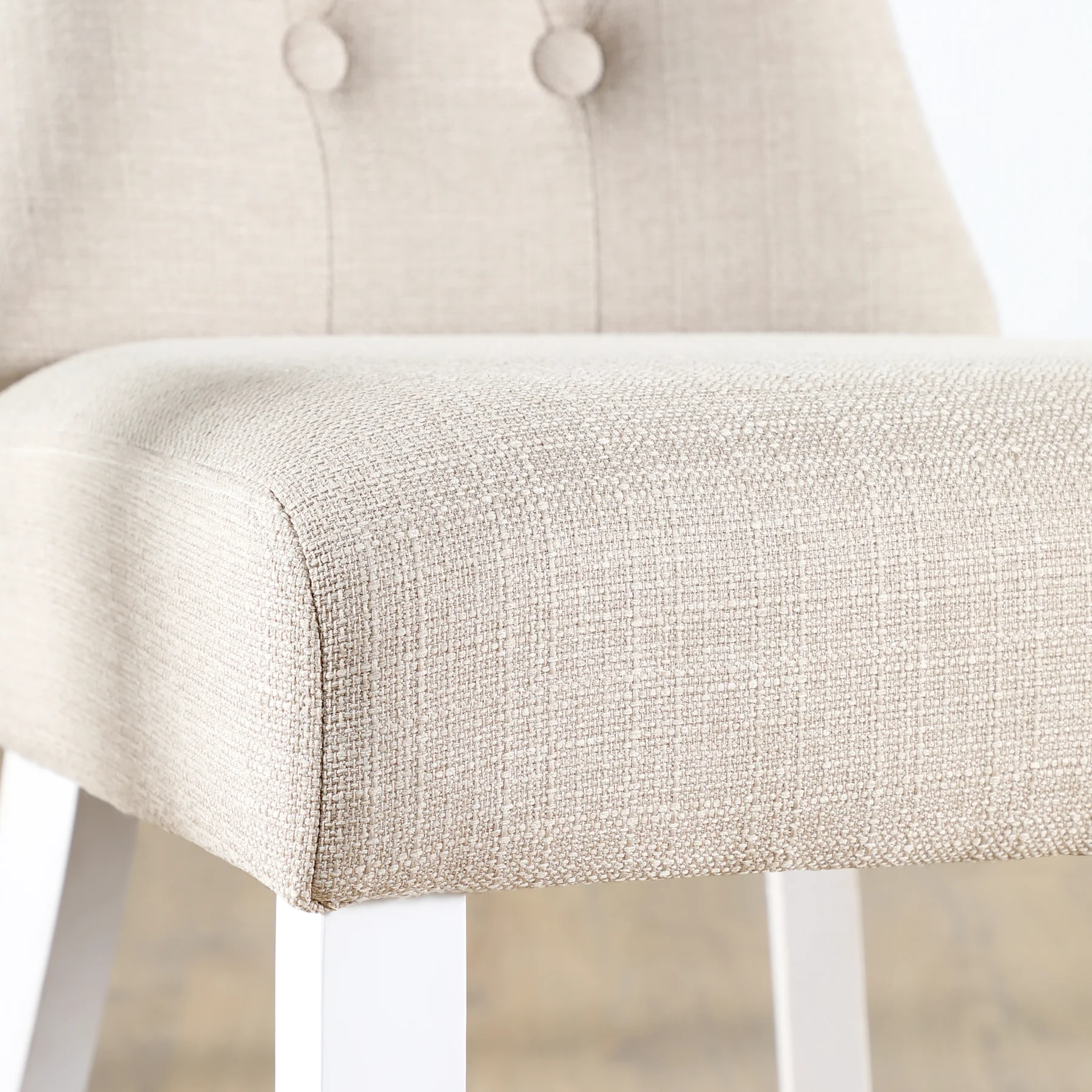 Bewley Dining Chair, Oatmeal Classic Linen-Weave Fabric & White Solid Hardwood