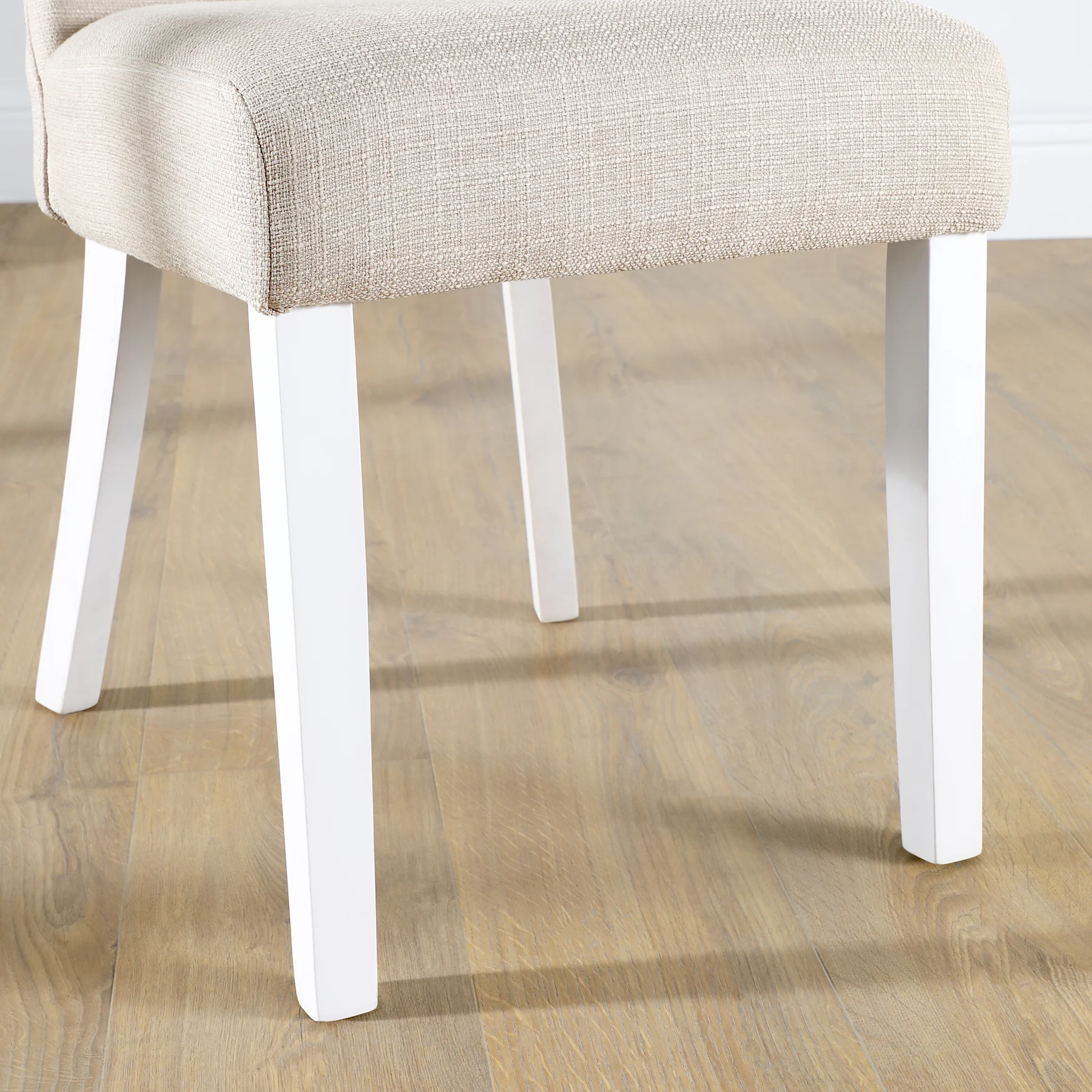 - Solid hardwood legs in a painted white finish