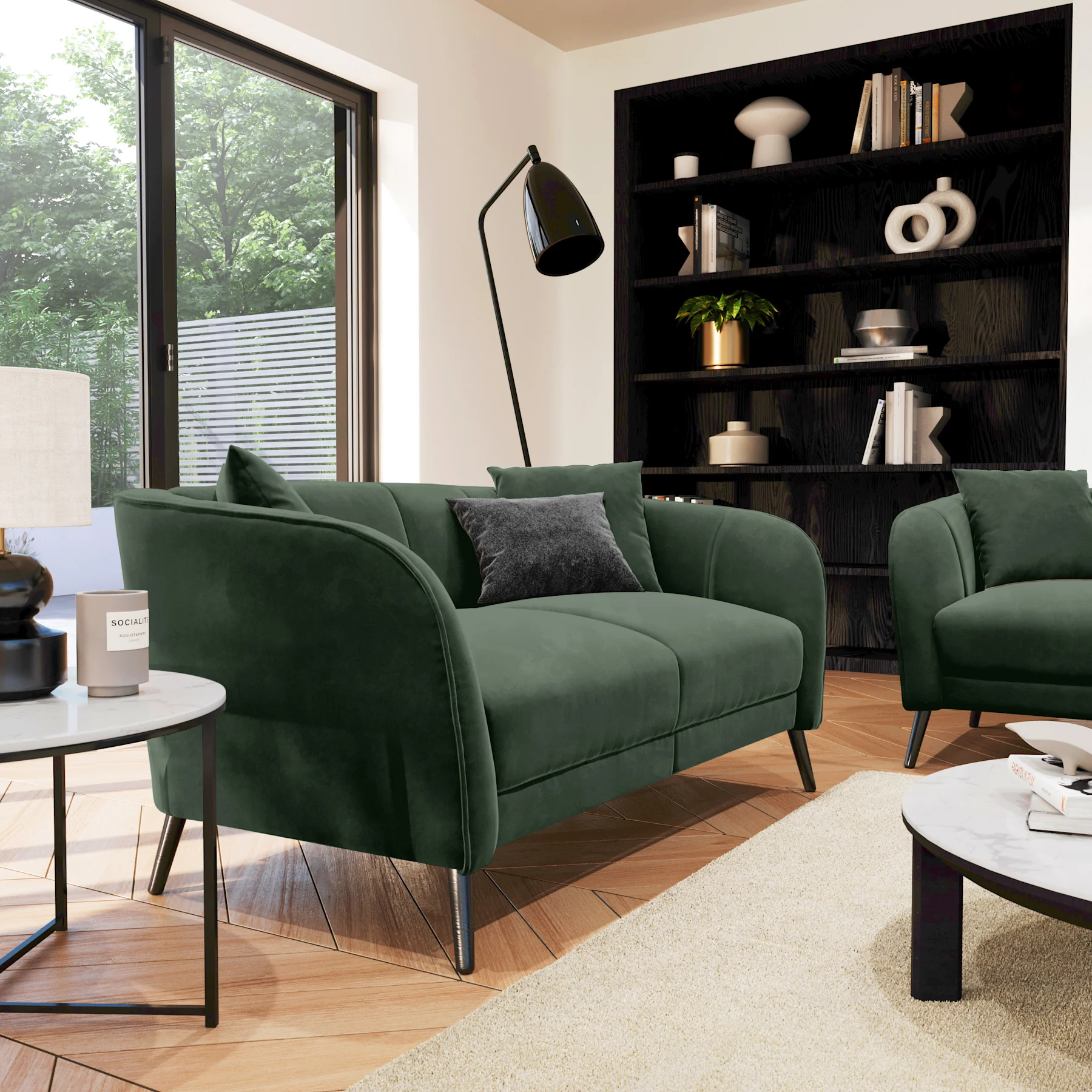 Loren 2 Seater Sofa, Moss Green Classic Velvet