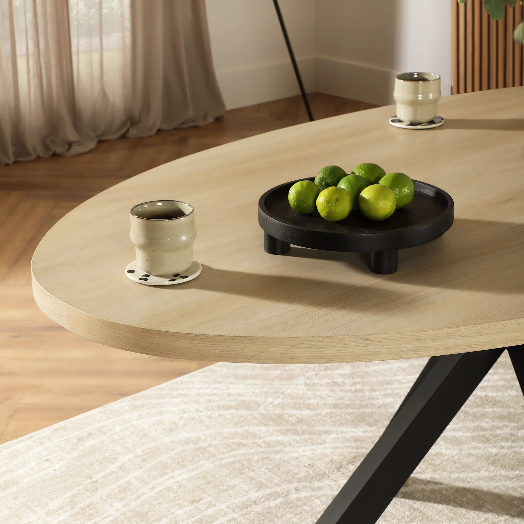 Madison Oval Dining Table, 180cm, Light Oak Effect & Black Steel