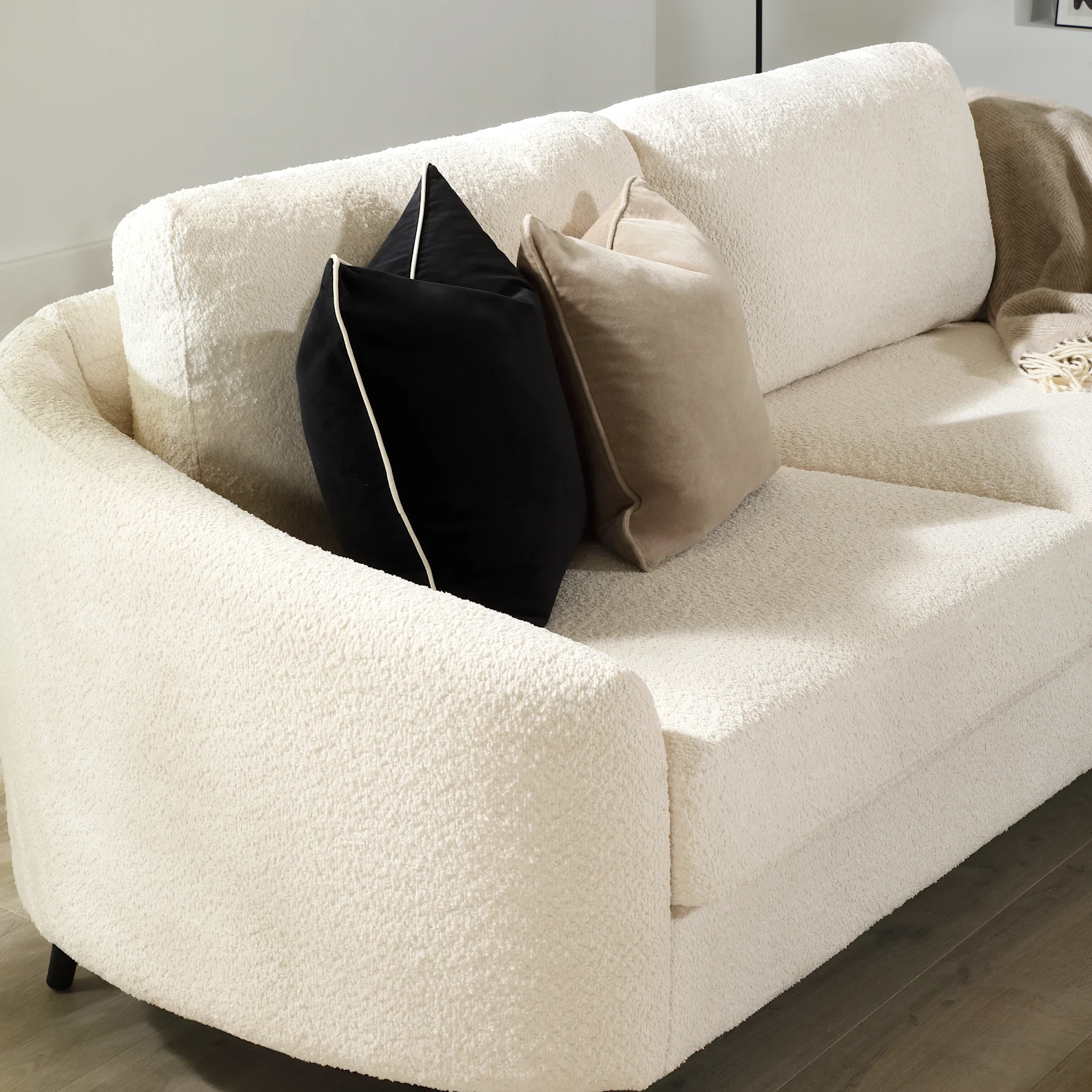 Mae 3 Seater Curved Sofa, Ivory Classic Boucle Fabric