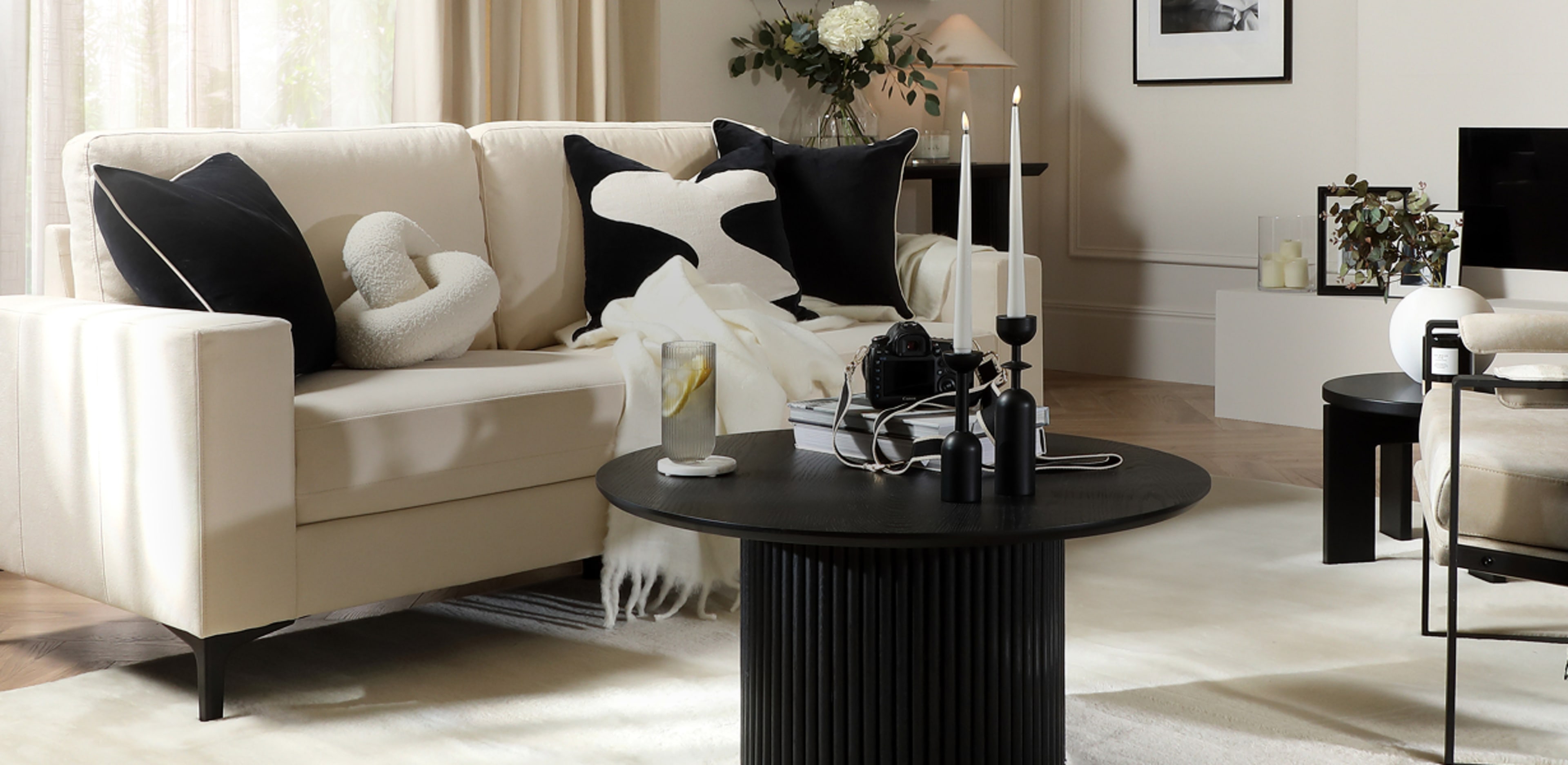 Orbit Round Dining Table, 110cm, White Marble Effect & Black Steel