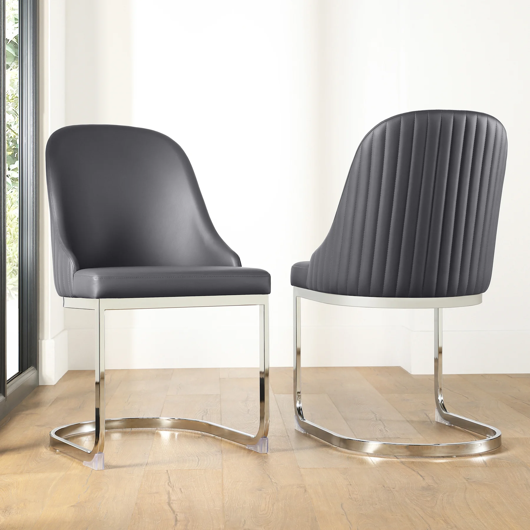 Riva Dining Chair, Grey Premium Faux Leather & Chrome