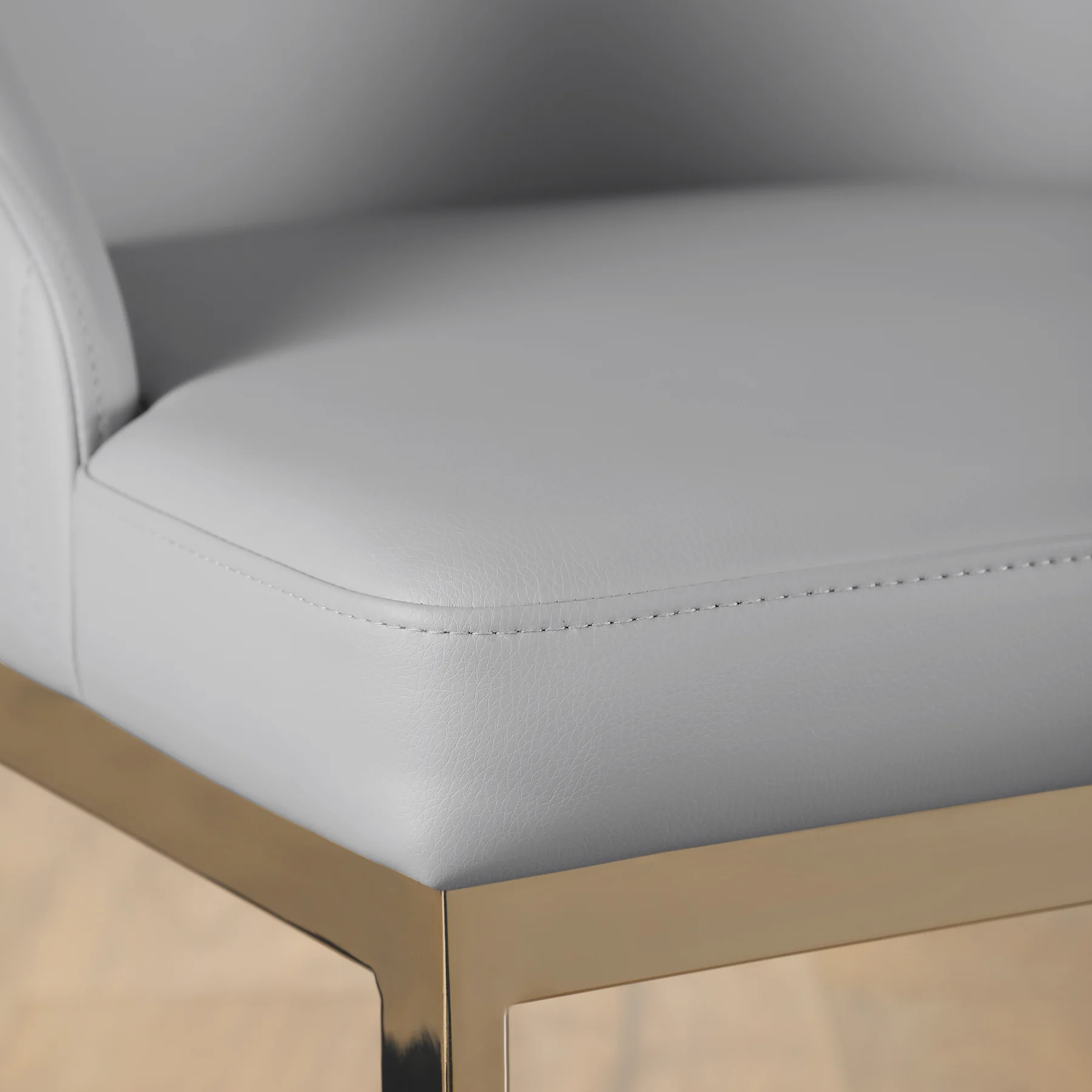 Riva Dining Chair, Light Grey Premium Faux Leather & Chrome