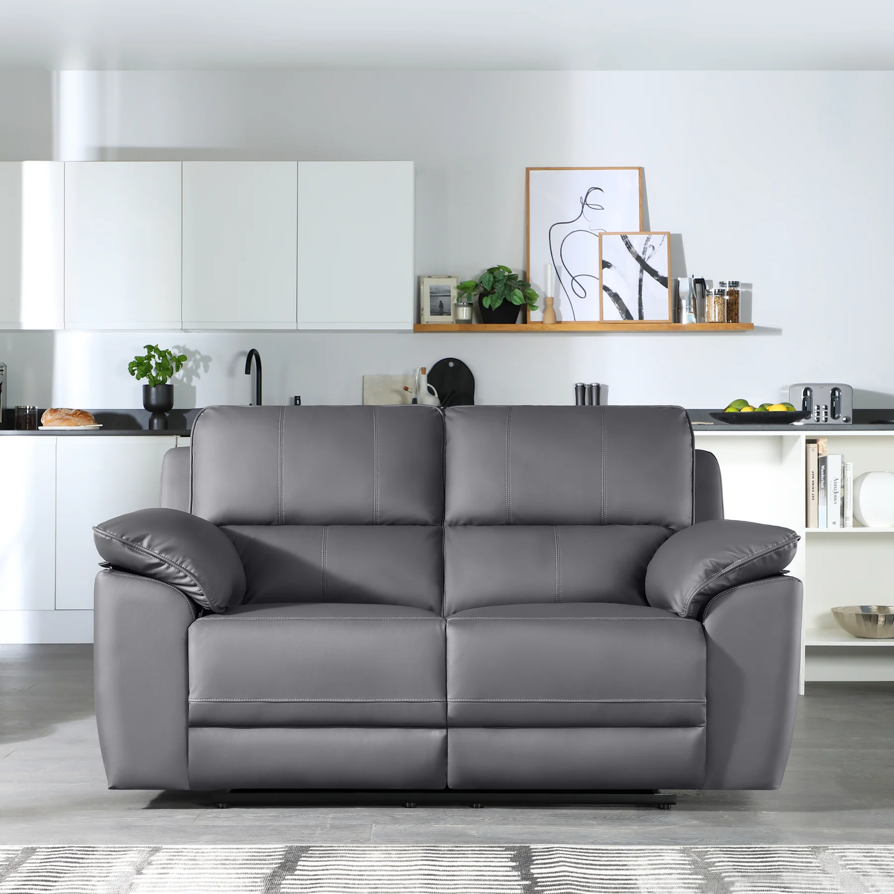 Seville 2 Seater Recliner Sofa, Grey Premium Faux Leather