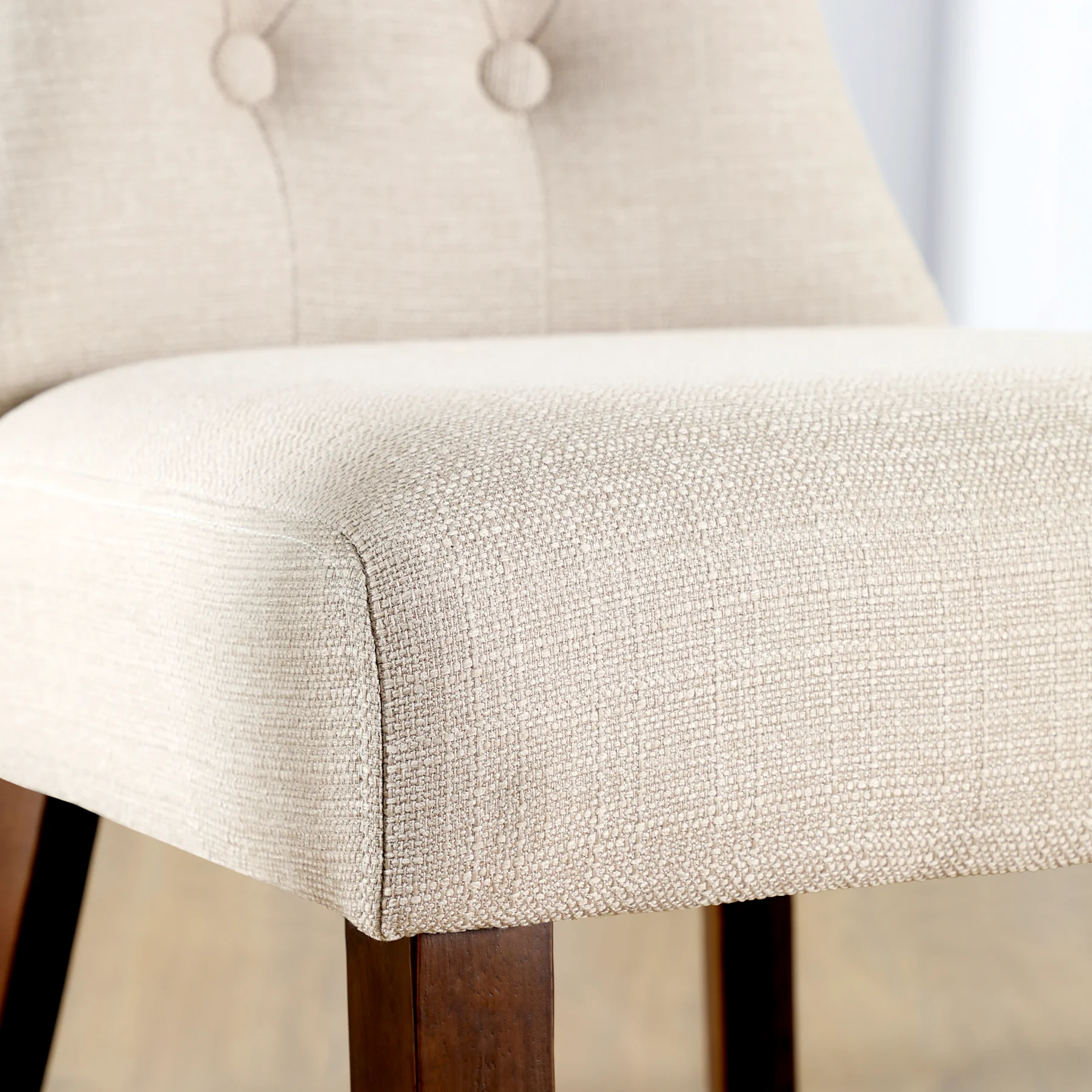 Bewley Dining Chair, Oatmeal Classic Linen-Weave Fabric & Dark Solid Hardwood