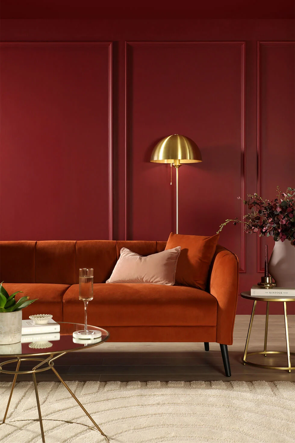 For those who want to go all out with red on the walls, it’s about picking the right tone of red. Terracotta trends quite highly on Google with 1,300 searches for the term ‘terracotta paint colour’. It’s a great choice if you want to inject an earthy touch into the room, thanks to its reddish-brown undertone. Oxblood with 2,400 searches is the red tone to inject passion, sophistication and warmth into the room. It works particularly well if you have wall-panelling as it highlights the depth of the walls. Burgundy, with 5,400 searches, has a cooler undertone compared to oxblood and is reminiscent of red wine.